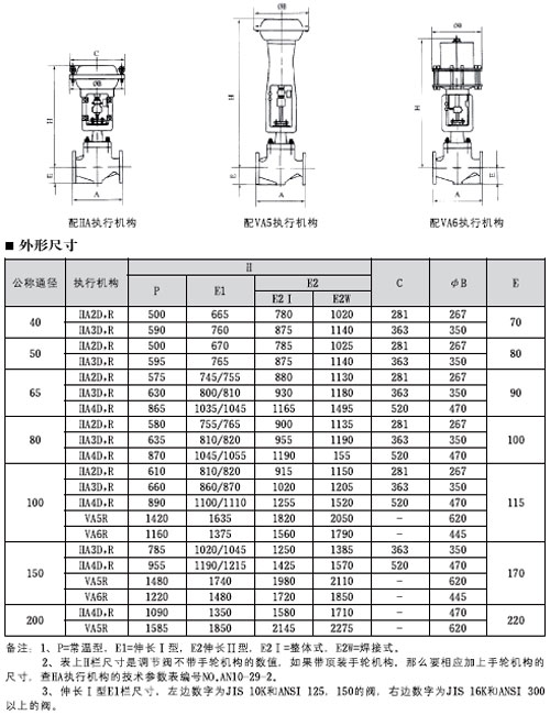 備注:該閥也可配用VA5和VP執行